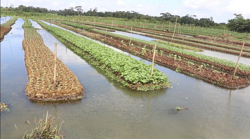 As a result, these lands used to remain barren almost year-round until local people innovated an agricultural technique — floating seedbeds — to enable cultivation in these marshlands, especially in the Beel Dumuria area.