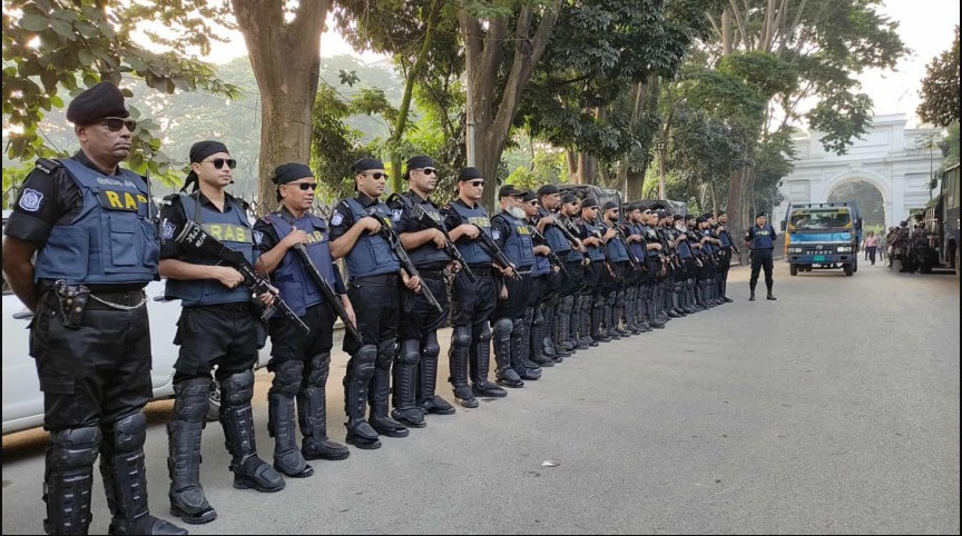 Members of the Border Guard Bangladesh (BGB), Rapid Action Battalion (Rab), and police have been deployed in and around the court area. The officers were transported in a green prison van.